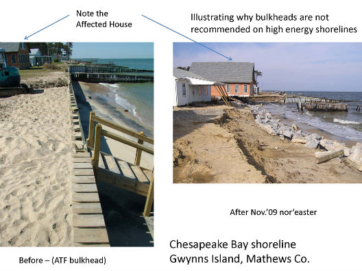 Why is a bulkhead not a good option for most shorelines?A bulkhead is an option for certain shorelines such as canals and marinas where navigation limits the use of other options. However, on shorelines where other options are feasible, bulkheads are not recommended for several reasons.