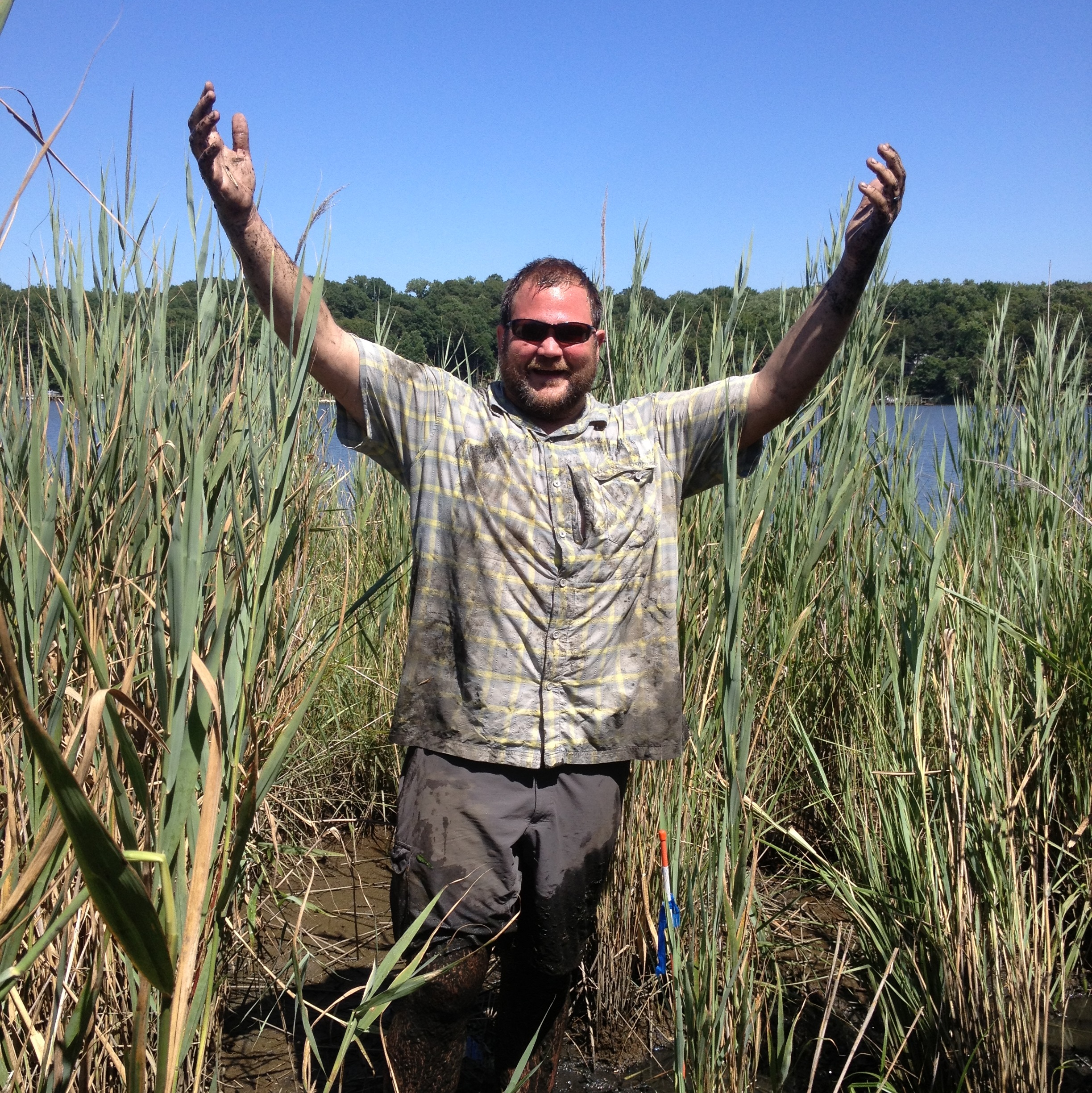 Eric Hazelton, a Ph.D. student at Utah State University, is conducting a large-scale removal of Phragmites australis in brackish marshes across nine Chesapeake Bay subwatersheds in order to determine how land use impacts restoration. He will compare nutrients, seedbank, and plant communities in 3 types of plots: where Phragmites is removed, where it is left intact, and native reference marshes. Additionally, he will use molecular techniques to track the success of individual Phragmites clones and reproduction. His results will help land managers focus their efforts and improve outcomes.
