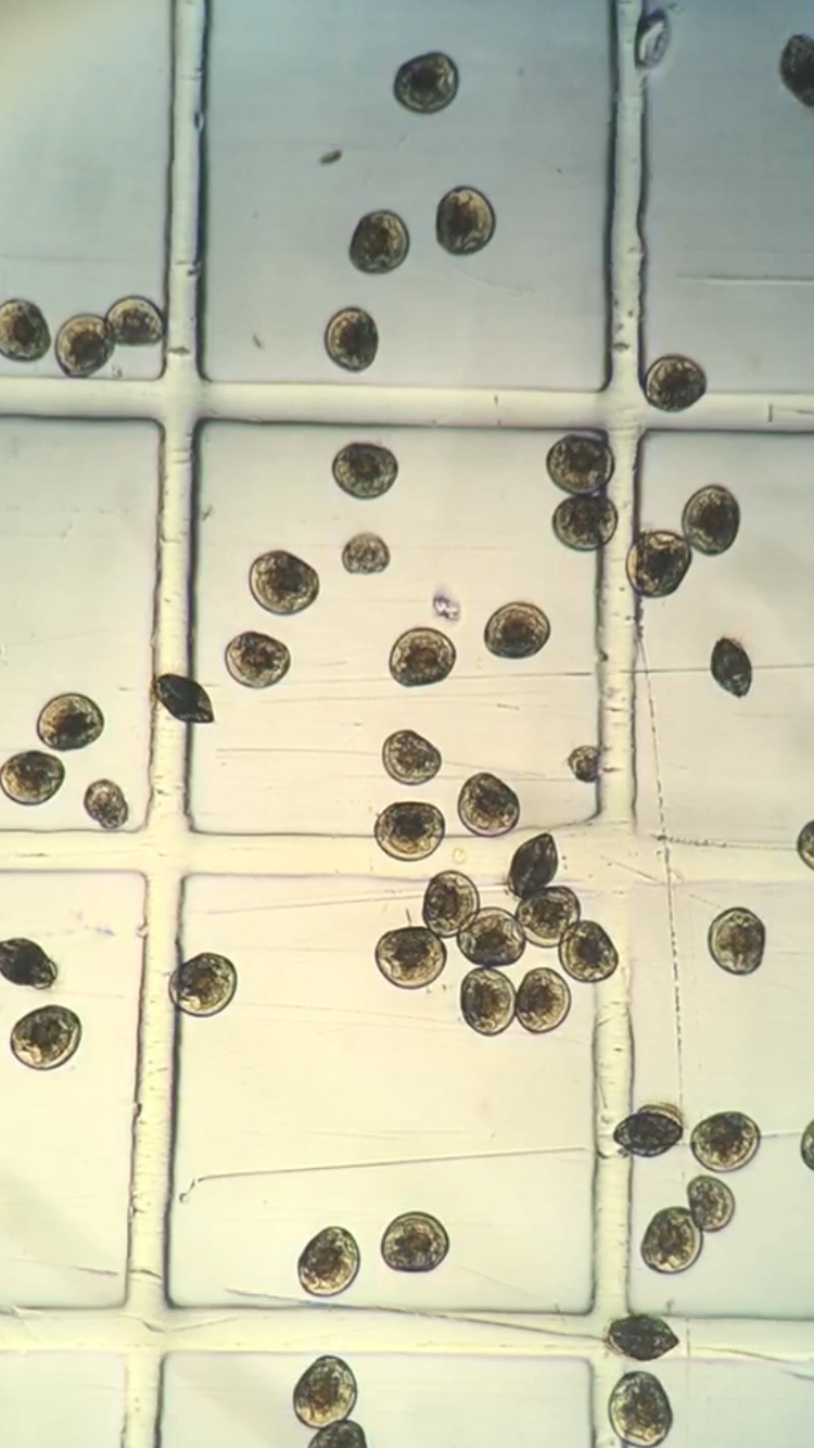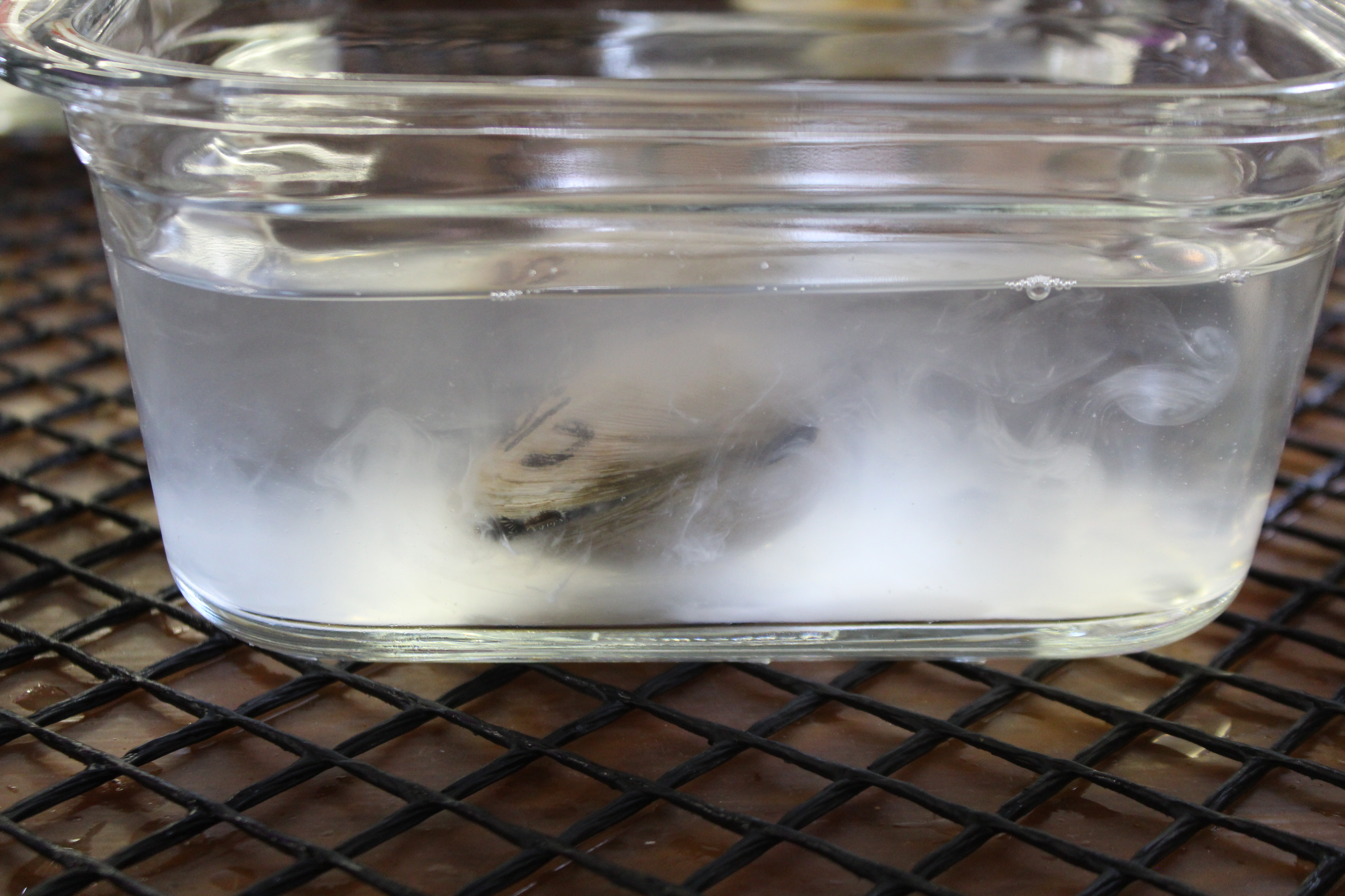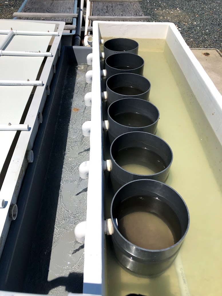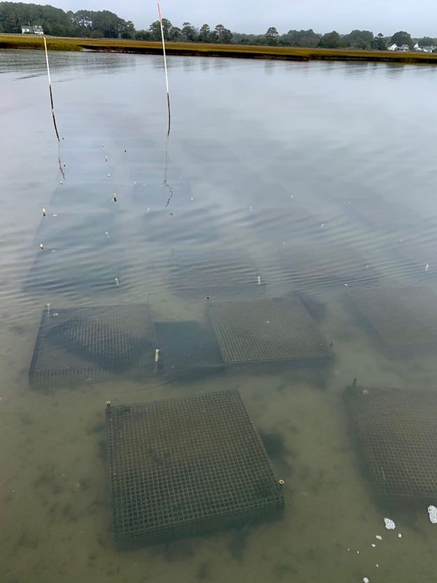 Independent clam stocks and strategic crosses have been spawned and maintained separately. All resulting progeny were cultured in ESL’s hatchery and nursery through the larval and early juvenile stages. Thermal and salinity tolerance tests were conducted on larvae and juveniles from each line to determine physiological tolerances of each group or cross. When clam seed reached a size large enough to be retained by grow-out gear, the clams were moved from the nursery to the field where they were placed in mesh bags retained within bottomless cages. This allowed the bag to settle down into the sandy bottom, where the clams could bury in the sediment while still being retained within the bag for easy retrieval or assessment. Once the clams outgrew the mesh bags, they could be planted directly within the bottomless cage. Animals and gear were maintained regularly and survival and growth were monitored throughout development. To test grow out performance at a commercial scale, ESL also provided clam seed from lines and crosses to commercial growers on Virginia’s seaside and in the Chesapeake Bay, with lower and more variable salinities.