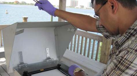 In a paper now in press, Mitra and Dr. Andrew Wozniak—another former Dickhut student—demonstrate the unique composition of marine-derived organic matter in rainwater from Hurricane Irene in 2011. The paper will appear in Marine Chemistry—an international journal for studies of all chemical aspects of the marine environment.