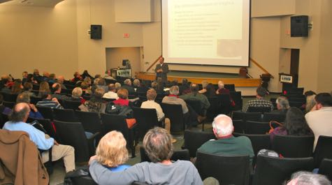 • After Hours Lecture   Professor Carl Hershner addresses the audience during a VIMS After Hours lecture.   © D. Malmquist/VIMS.