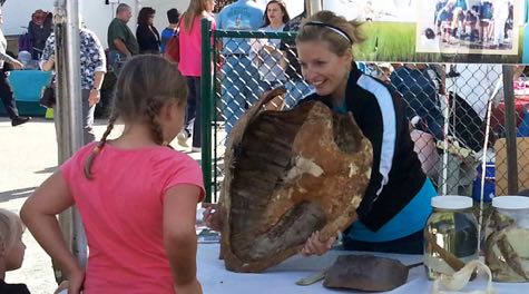 • Poquoson Seafood Festival   VIMS graduate student Hadley McIntosh staffs the VIMS booth during the Poquoson Seafood Festival.   © S. Maples/VIMS.