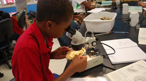Each student has the opportunity to gain field experience at VIMS during the program, which reflects some of the lessons they are learning in their life science classes. “While the students are at VIMS, they spend half their time in the laboratory and the other half in the water,” says McGuire. “They do lab activities using microscopes and dichotomous keys, which are often refreshers for them, and then they spend time seining and collecting samples in the York River.”