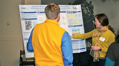 The event offered VIMS researchers an opportunity to network with other scientists from around the Commonwealth who work with Virginia Sea Grant (VASG) through funded research, extension, education, communication, and other partnerships. VASG partners with researchers at George Mason University, Old Dominion University, the University of Virginia, Virginia Commonwealth University, and Virginia Tech.