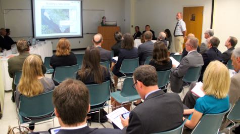 Dean and Director John Wells welcomed the subcommittee and audience to VIMS’ Gloucester Point campus, saying, “We are delighted to host this group, especially since they are doing such valuable work. Coastal flooding is one of the most important issues facing the Commonwealth today and in the coming decades.” Wells is a member of Governor Terry McAuliffe’s Climate Change and Resiliency Update Commission, which itself is tasked with providing recommendations to help the Commonwealth adapt to coastal inundation.