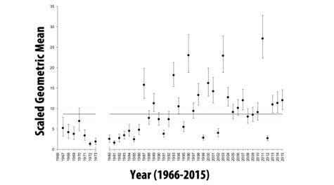 Striped bass spawning biomass, a measure of adult fish that return to spawn each spring, is traditionally dominated by a few strong year classes. For instance, striped bass recovery in the mid 1990s was partially attributed to a few strong year classes produced in the late 1980s. Striped bass populations, and the fisheries they support, are stabilized by strong year classes that can mitigate the effect of less-productive years. Although the 2015 year class of striped bass is considered average in terms of abundance, recruitment has been above-average or average in 12 out of the past 13 years, indicating production has been relatively consistent in Virginia nurseries.