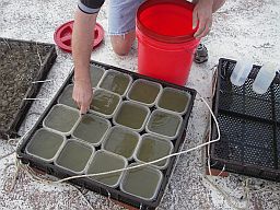 Bottom placed cages present a compromise in farm management. Oysters in cages at high densities grow quickly and filter enormous volumes of water.  Regular “splitting” of these densities to subsequent cages improves growth and survival but increases labor costs. High densities of oysters can also cause an accumulation of organic rich fecal material below the cages that must be managed by careful location of cages and periodic movement. We are working with local oyster farms to develop quantitative biological models that enables managers to develop best management practices to insure both optimal oyster growth and profitability, and sustainable ecosystem health.