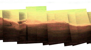 Post processing of digitized video images allows quantification of microtopography, fauna, and sediment attributes. The image above is a mosaic of several video frames acquired from a short section of one sled transect. This reconstruction of the bottom was accomplished by manual alignment of images using visual surface and subsurface features to register them. A level installed in the prism now depicts fore-aft inclination angle, allowing bottom reconstruction using sled-tilt angles observed during deployment. The compilation image is analogous to a very detailed acoustic sub-bottom profile image. Resolution is now limited by the frame grabber board. The real-time and assembled plowing video profile images should be very useful to side-scan sonar ground-truthing efforts, enabling rapid determination of sources of variation in the broad-scale acoustic reflection patterns.