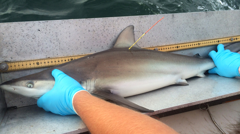 Sharks play a key role in marine ecosystems worldwide. The Virginia Shark Monitoring and Assessment Program (VASMAP) is a key source of data for better understanding and management of sharks in the mid-Atlantic.  The systematic study of mid-Atlantic sharks at VIMS began in 1974 and now stands as one of the longest-running fishery-independent studies of shark populations in the world. This longline survey brought global attention to significant declines in shark populations due to overfishing, and led to the first U.S. management plan for sharks, in 1993. Because sexual maturity doesn't occur until age 5 or later, and only 8-10 pups are produced each year, recovery of shark populations from severe depletion can take decades.  As fishing regulations help shark populations rebound in U.S. waters, data from shark research programs at VIMS continue to inform stock assessments and fishery management plans at federal and state levels.
