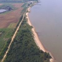Installed in 1986, the project protected 2,000 ft of shore with 3 headland breakwaters spaced relatively far apart and close to shore in order to establish firmly attached headland features. The adjacent shore has been allowed to erode toward equilibrium. The system was designed using a combination of shore morphology evolution and Static Equilibrium Bay model to predict long term planform configuration. Beach fill and wetland plants were placed on constructed tombolos.